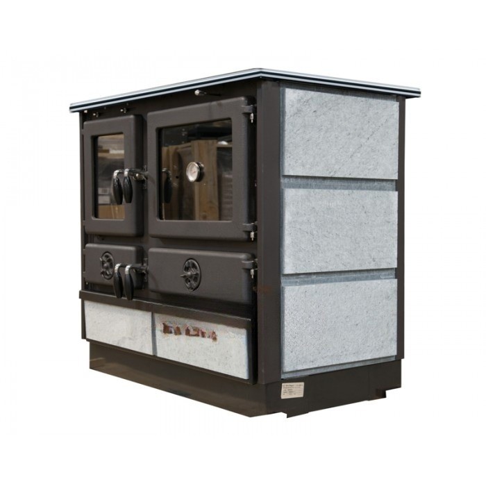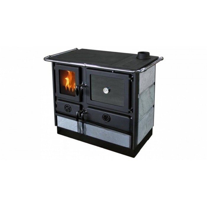 Плита на дровах MBS Magnum S (с камнем) из эмалированной стали, а дверцы, верхняя плита и топочная камера - из чугуна. Боковые панели изготовлены из натурального камня талькохлорита, который имеет привлекательный внешний вид, а также славится своими теплонакопительными свойствами.