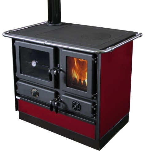 Кухонная печь MBS Magnum Plus изготовлена из эмалированной стали, а дверцы, верхняя плита и топочная камера - из чугуна.