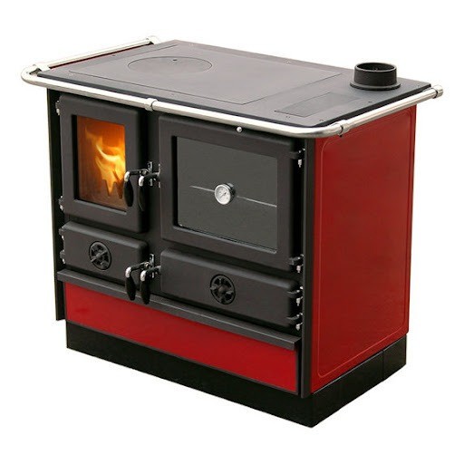 Кухонная печь MBS Magnum Plus изготовлена из эмалированной стали, а дверцы, верхняя плита и топочная камера - из чугуна.