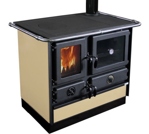 Кухонная печь MBS Magnum Plus изготовлена из эмалированной стали, а дверцы, верхняя плита и топочная камера - из чугуна.