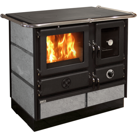 Кухонная печь MBS Super Thermo Magnum Plus S изготовлена из эмалированной стали, а дверцы, верхняя плита и топочная камера - из чугуна. Боковые панели изготовлены из натурального камня талькохлорита, который имеет привлекательный внешний вид, а также славится своими теплонакопительными свойствами.