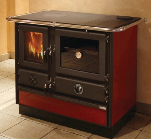 Кухонная печь MBS Thermo Magnum Plus изготовлена из эмалированной стали, а дверцы, верхняя плита и топочная камера - из чугуна.