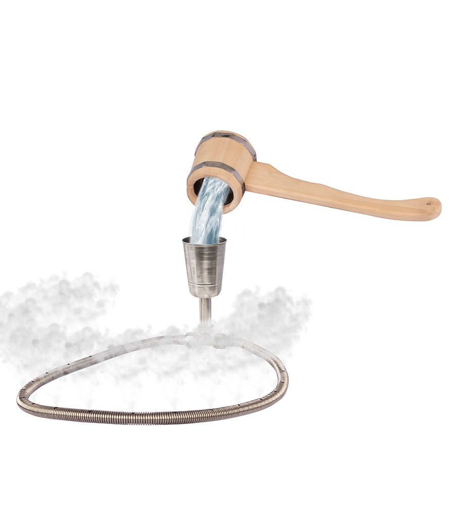 Парогенератор в печах с закрытой каменкой нужен для получения максимально полезного мелкодисперсного пара. Парогенератор состоит из лейки и системы трубок, с помощью которой вода попадает с середину каменки. Сильно нагретые камни моментально испаряют воду со взрывным эффектом. При этом камни в каменке не успевают сколь-нибудь значительно остыть. Каменка с парогенератором всегда готова к работе и всегда выдаёт водяную взвесь самой мелкой фракции. Трубка парогенератора сделана в виде гибкого кольца, чтобы количество воды, подаваемой в разные стороны каменки, было одинаковым и камни слева и справа от парогенератора имели одинаковую температуру. Гибкая часть парогенератора укладывается в каменку среди камней. Вода в виде капель попадает на камни через отверстия, сделанные в трубке устройства. Небольшие капли воды испаряются практически моментально, за доли секунды превращаясь в пар.