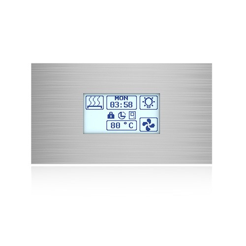 Пульт управления Sawo для парогенератора STP - это современный сенсорный пульт с анимированными кнопками на цифровом дисплее, обрамленный в прямоугольный корпус из нержавеющей стали. Сенсорный пульт может эксплуатироваться в течение 4-24 часов и позволяет контролировать температуру в диапазоне 40-110 градусов, недельный таймер на 7 дней позволяет запомнить комплекс из трех программ ежедневно, возможность управлять освещением и вентиляцией. Для предотвращения случайного сброса пульт оснащен блокировкой клавиш.