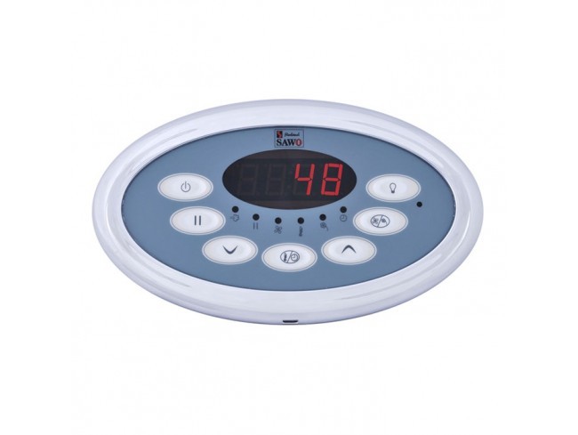 Пульт управления Sawo для парогенератора STP - это классический пульт овальной формы с прорезиненными кнопками и подсветкой, который может эксплуатироваться в течение 4-24 часов и позволяет контролировать температуру в диапазоне 40-110 градусов, недельный таймер на 7 дней позволяет запомнить комплекс из трех программ ежедневно. Для предотвращения случайного сброса пульт оснащен блокировкой клавиш.