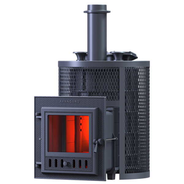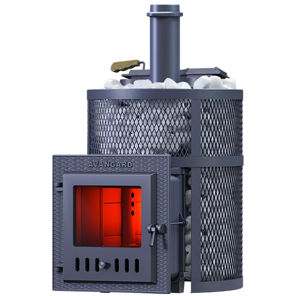 Печь для бани Гефест Авангард ЗК 25 (М) Ураган круглая сетка, материал чугун, дровяная, макс. объем парилки 24 м³, дверца со стекла, выносная топка