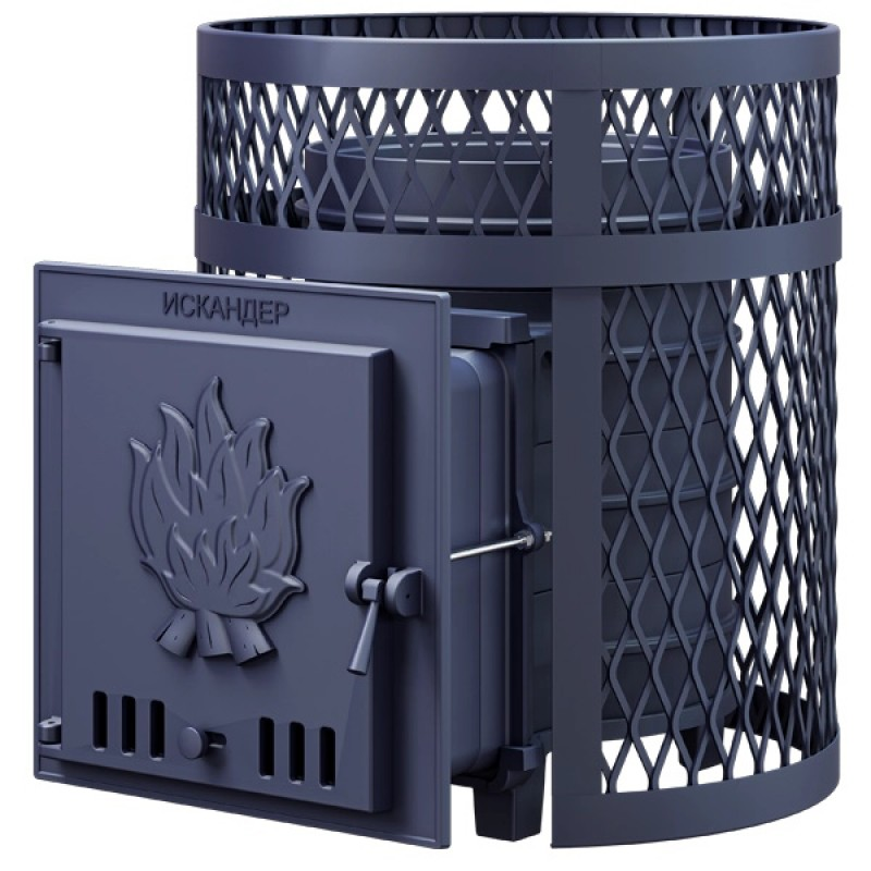 Чугунная банная печь «Искандер» предназначена для отопления парного помещения и генерации мелкодисперсного пара. Печь предназначена для использования совместно с кожухом-сеткой с дальнейшей загрузкой камней, увеличивающих теплоёмкость и снижающих тепловое излучение. Печь рассчитана для создания паровых режимов «русская баня» в условиях индивидуального использования.