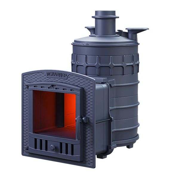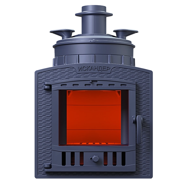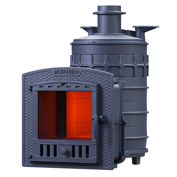 Искандер 18 - чугунная банная печь с прямым нагревом парообразователя. Печь со стенками толщиной 14 мм. Быстро нагревает воздух в парной и производит качественный мелкодисперсный пар за счёт теплоёмкой каменки, оснащённой теплосъёмными шипами на нижней поверхности.