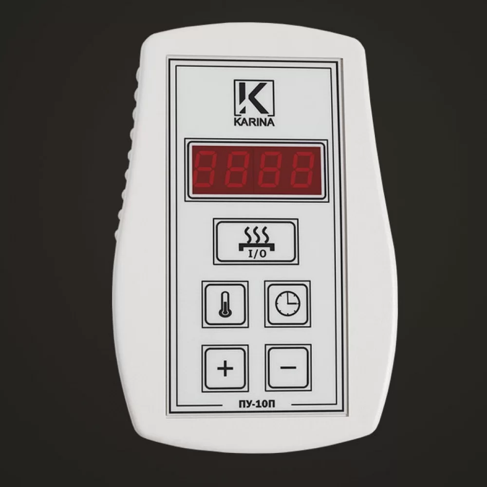 Электрические печи для сауны используются совместно с цифровым пультом управления. Пульт Karina Slim CS15 с выносным силовым блоком, длина кабеля от пульта до блока 2 м и датчиком температуры. Мощность блока 32 А. Используется для электрокаменок, мощность которых не превышает 15 кВт.