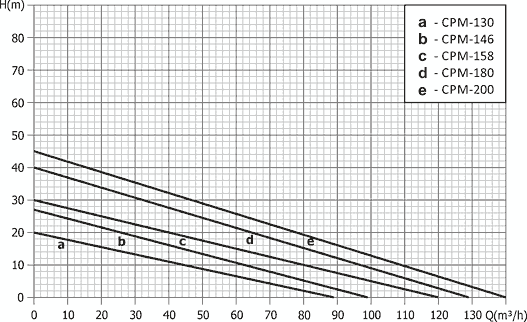 | CPM 130 | 0.37 | Напор, Н(м) | 16 | 14 | 12 | 8 | 3 | - | - |