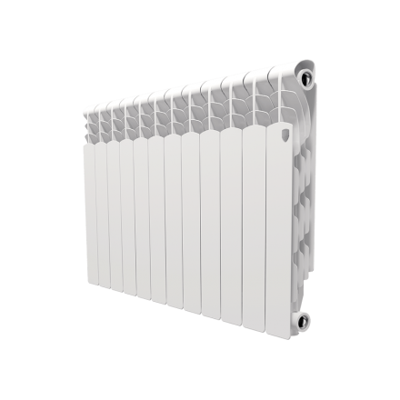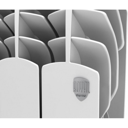 Алюминиевые радиаторы Royal Thermo 500 Revolution итальянский бренд производит в России для индивидуальных отопительных систем. Эти батареи отличают качество, надежность, стильный дизайн в сочетании с передовыми технологическими достижениями. Уникальной особенностью алюминиевого радиатора REVOLUTION является волнообразная форма ребер. Такая конструкция секции улучшает конвекцию воздуха, способствуя его свободному прохождению внутри радиатора, и повышает теплоотдачу прибора на 3%.