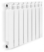 Биметаллические радиаторы предназначены для отопления многоэтажных домов. В этих радиаторах секция выполнена из стального вертикального и горизонтального коллектора. Конструкция полностью исключает контакт теплоносителя с алюминиевым корпусом. Сочетание алюминиевого «корпуса» и стального «сердечника» позволяет прибору отличаться особой прочностью и долговечностью. Благодаря этой технологии прибор максимально устойчив к воздействию избыточного давления при гидравлических ударах в системах отопления. Особый дизайн, вертикальные и горизонтальные ребра биметаллического радиатора улучшают проход воздуха, что увеличивает теплоотдачу.