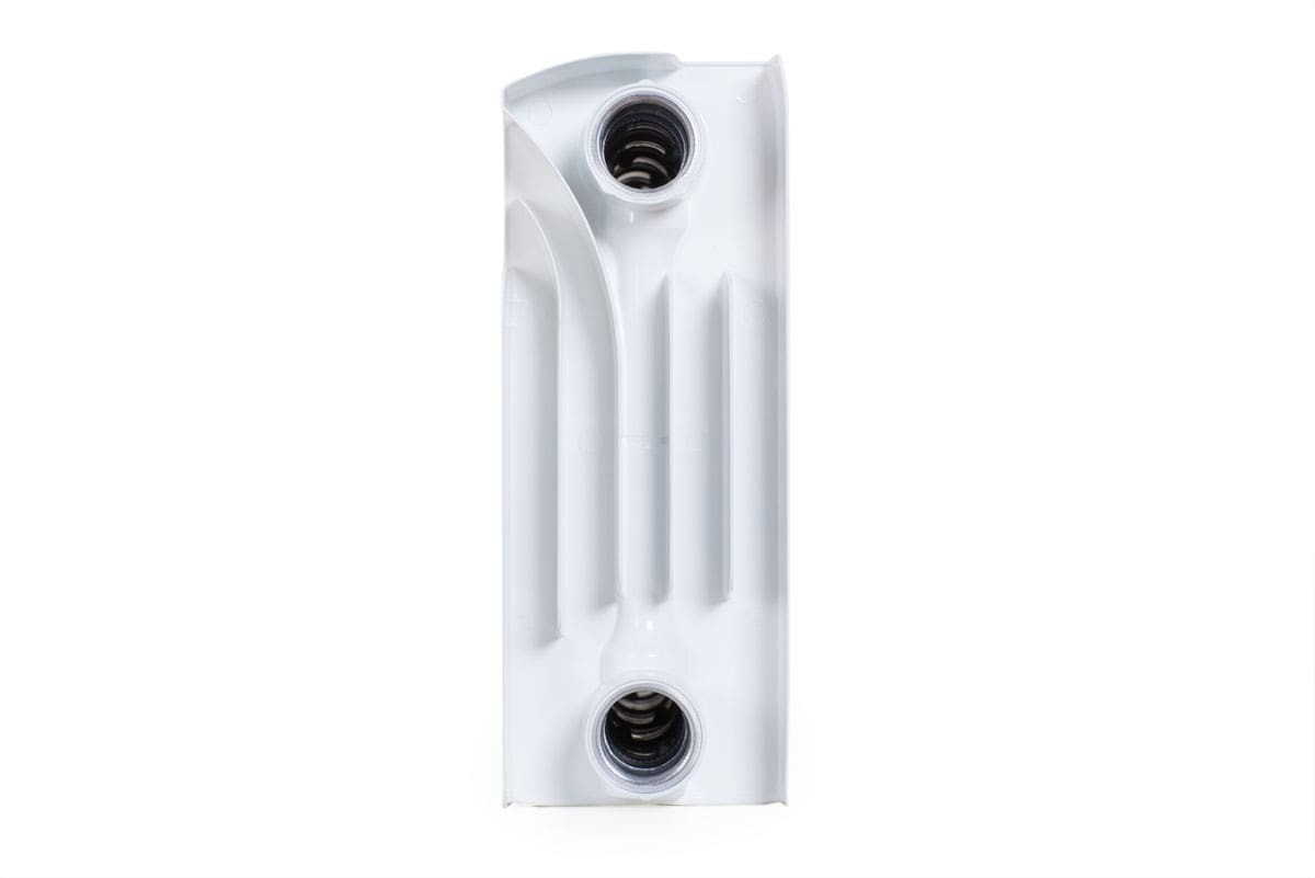 Секции прибора имеют монолитное строение, состоящее из стальной трубы, в которую под высоким давлением в 300 ат заливается сплав алюминия. За счет этого они обладают высочайшим запасом прочности с прекрасными литейными свойствами. Изготовленные таким образом батареи с тонким оребрением весьма действенны по теплоотдаче. Их максимальная рабочая температура – 135°C.