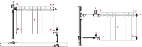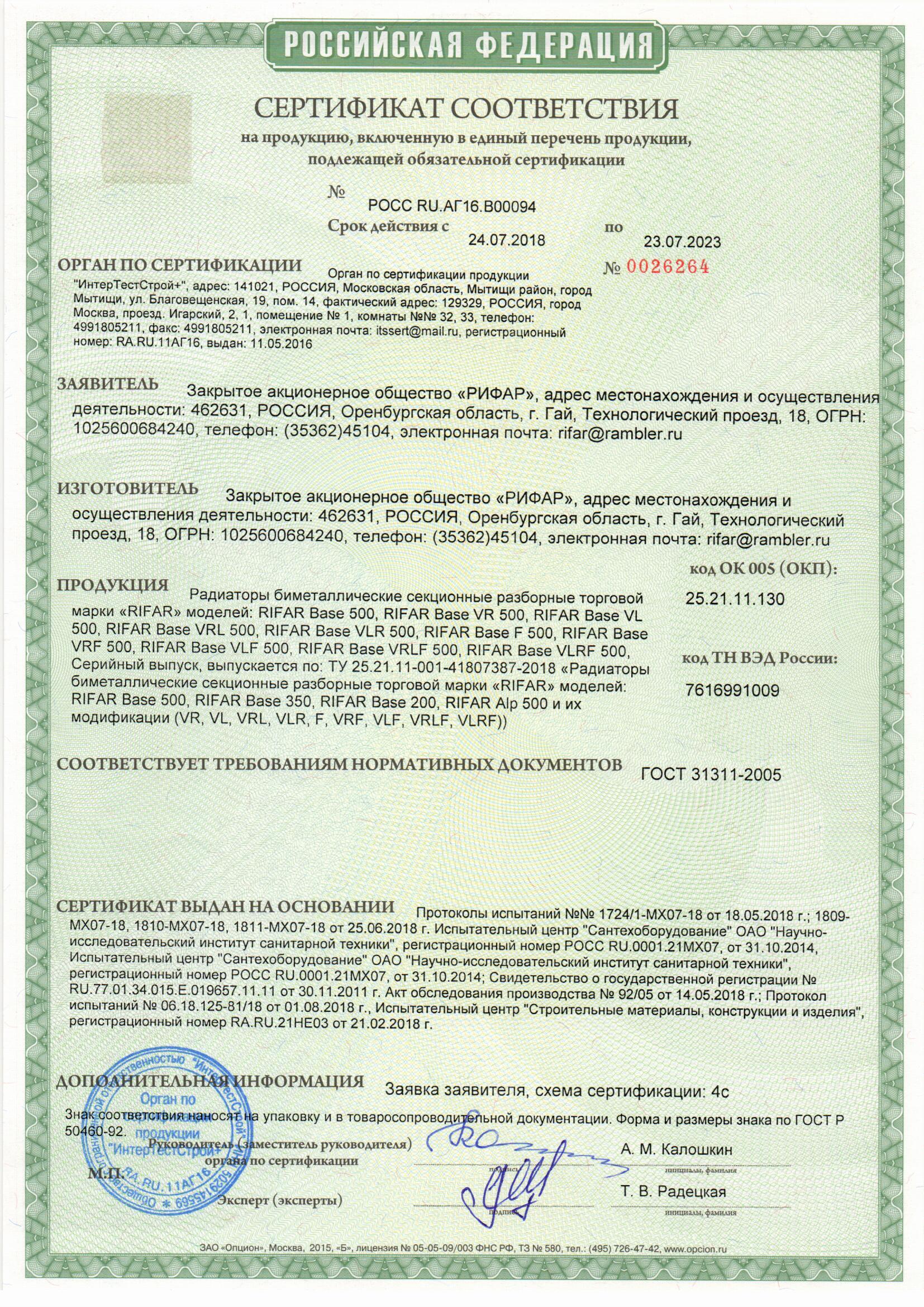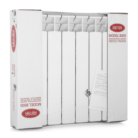 Биметаллический радиатор Rifar, модель Base, , боковое подключение, межосевое расстояние 500 мм. Комплектность секций: 4, 6, 8, 10, 12. Гарантия 10 лет