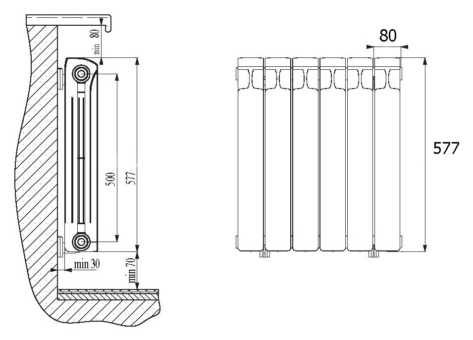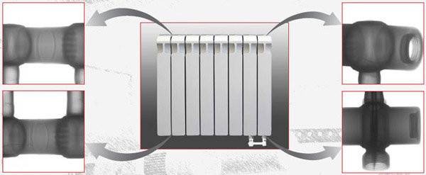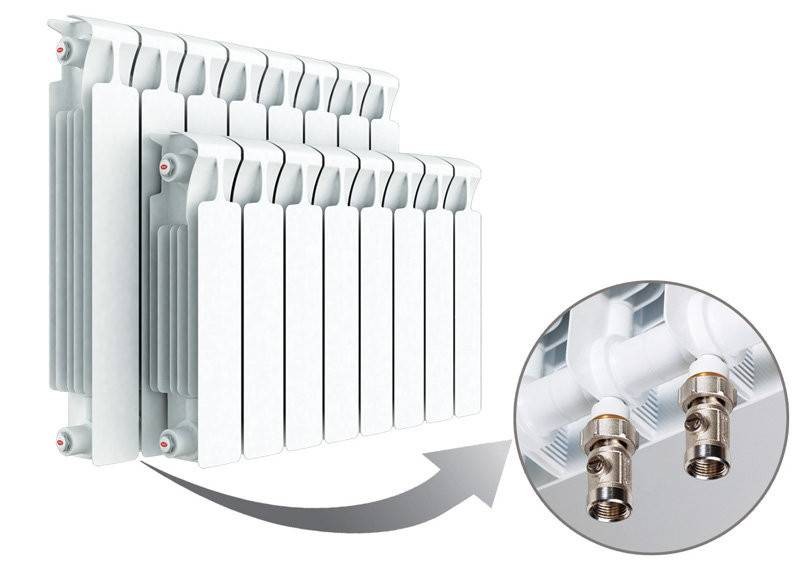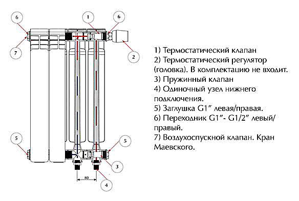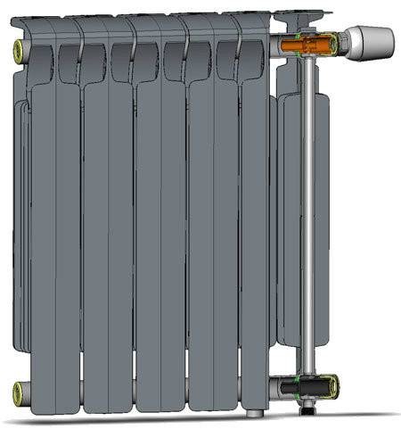 Специально для нижнего подключения разработано конструктивное исполнение алюминиевых и биметаллических радиаторов. Такое исполнение имеет обозначение VENTIL. В зависимости от выбранной модели после сборки радиатор сохраняет ее теплотехнические и эксплуатационные характеристики. При разработке проекта системы отопления необходимо учесть гидравлические особенности узла нижнего подключения и термостатического клапана согласно оговоренной комплектации.