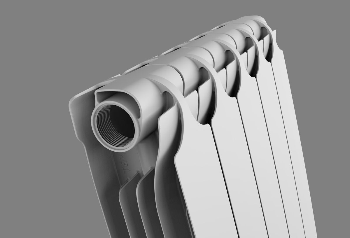 Секции радиатора выполнены из трубчатой сварной арматуры из высококачественной стали, залитой снаружи алюминиевым сплавом под высоким давлением. Сборка секций осуществляется с использованием усиленных стальных ниппелей и термостойких прокладок типа «O-ring». Данная конструкция радиатора позволяет полностью исключить контакт теплоносителя с алюминиевым сплавом и обеспечивает эффективную теплоотдачу при максимальной прочности и коррозийной стойкости.