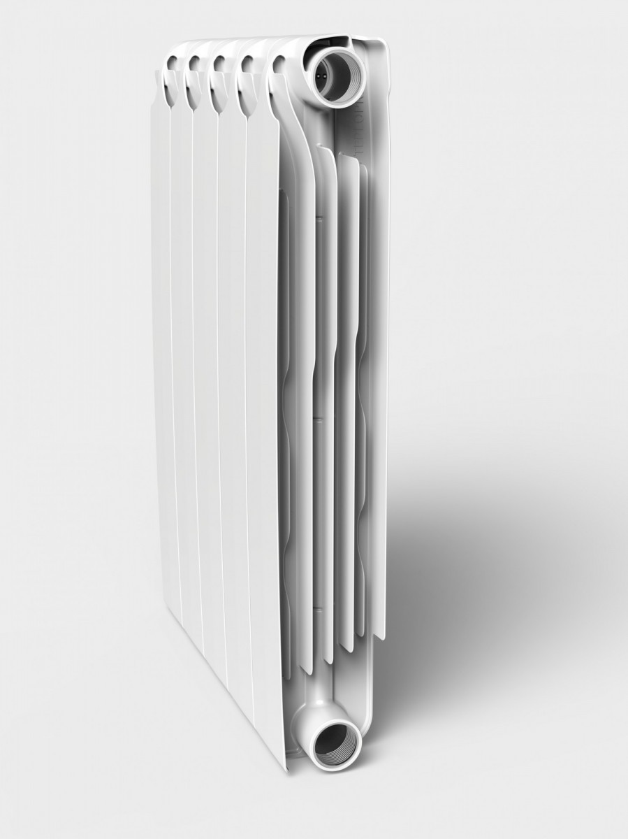 Секции радиатора выполнены из трубчатой сварной арматуры из высококачественной стали, залитой снаружи алюминиевым сплавом под высоким давлением. Сборка секций осуществляется с использованием усиленных стальных ниппелей и термостойких прокладок типа «O-ring». Данная конструкция радиатора позволяет полностью исключить контакт теплоносителя с алюминиевым сплавом и обеспечивает эффективную теплоотдачу при максимальной прочности и коррозийной стойкости.