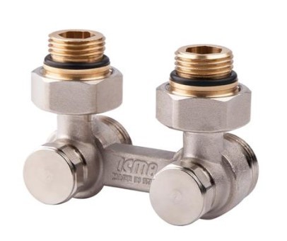Двухтрубный угловой вентиль для стального радиатора Icma (бинокль) предназначен для нижнего подключения отопительных радиаторов при расположении присоединительных патрубков с межосевым расстоянием 50 мм. Устанавливается для двухтрубных систем отопления. Двойные узлы для нижнего подключения Icma поставляются в комплекте с переходником 1/2" на 3/4" (наружн/наружн). Переходник имеет уплотнительное кольцо с круглым сечением из высококачественного каучука EPDM, который обеспечивает отличную герметизацию соединения.