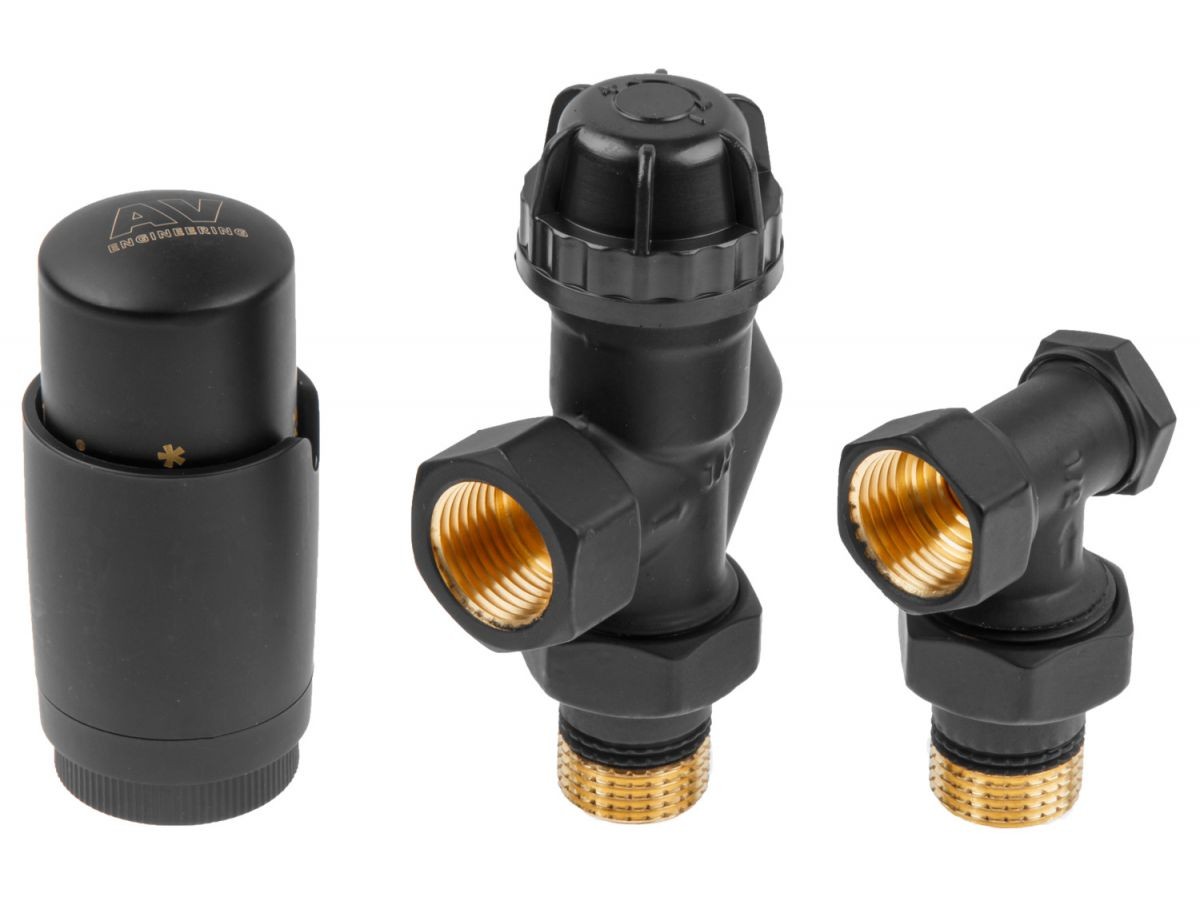 Термостатический комплект запорных кранов для радиаторов в осевом исполнении т.е. после подключения термоголовка будет расположена по оси радиатора, параллельно стене. Осевой комплект кранов AV Engineering состоит из: термостатическая головка для поддержания заданной температуры; осевой термостатический клапан 1/2 со специальным креплением для установки термоголовки; вентиль запорный 1/2 для отключения радиатора от системы отопления.
