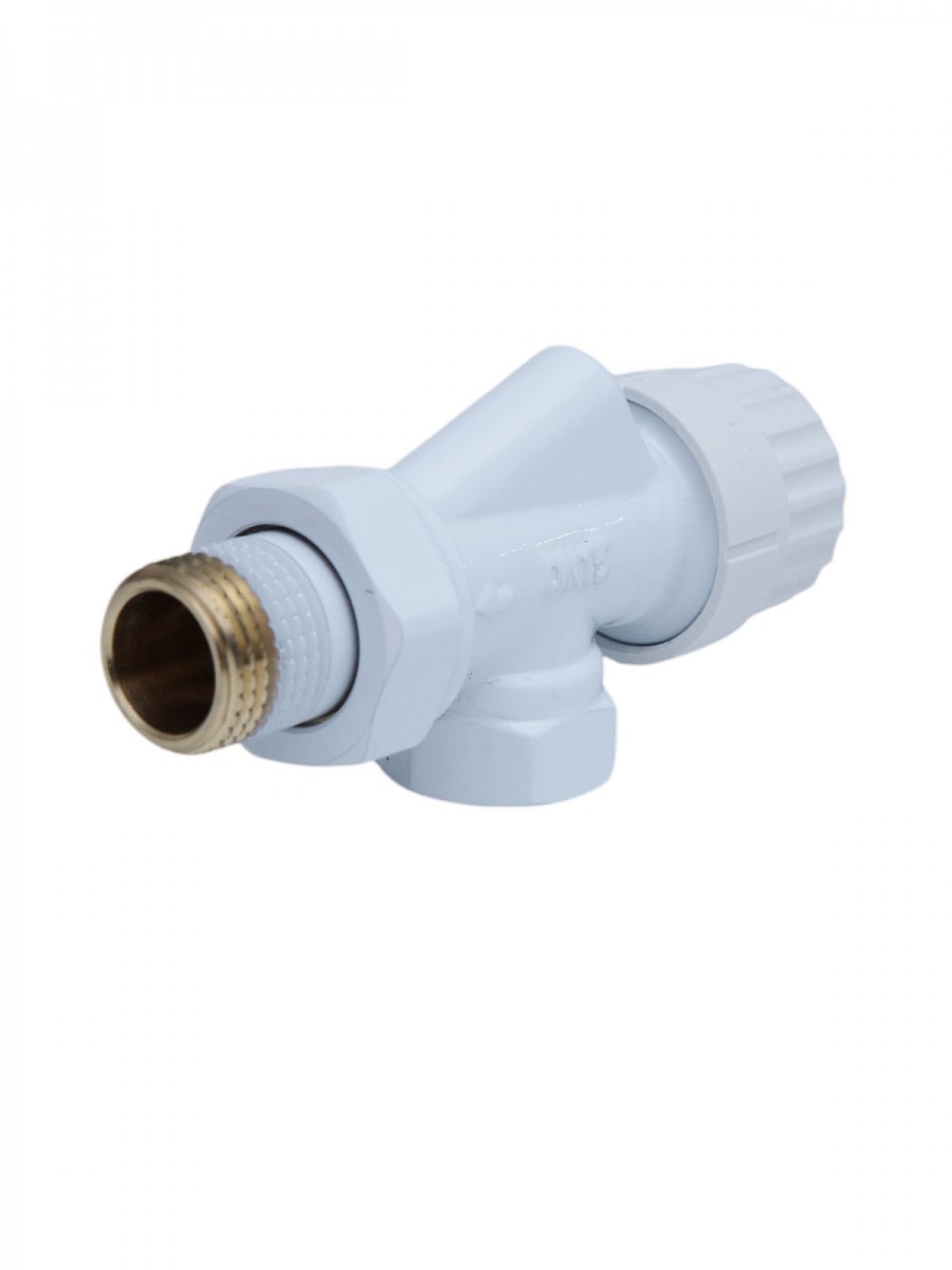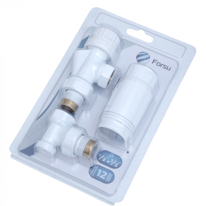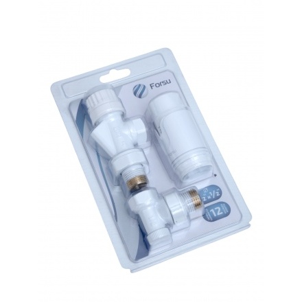 Комплект радиаторный с термоголовкой Forsu 1/2 осевой белый, максимальная температура 100°C, материал - латунь.