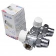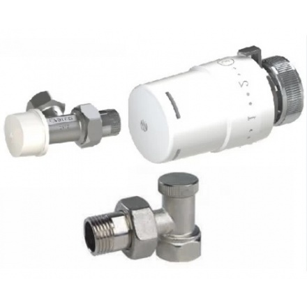 Комплект радиаторный осевой с термоголовкой 1/2", максимальная температура 110°C, материал - латунь.