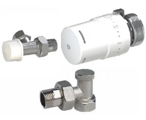 Вентиль для радиатора осевой 1/2", вентиль запорный 1/2", термостатическая головка |