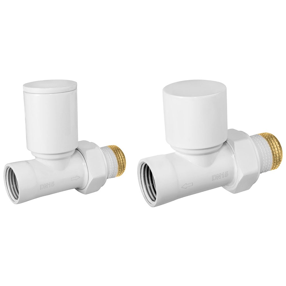 Комплект радиаторный прямой белый Ferro ZGB30WH нр1/2''-вр1/2'' для подключения систем отопления. Элементы комплекта: регулировочный клапан прямой 1/2”, отсекающий клапан прямой 1/2”.
