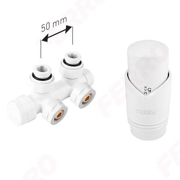Комплект термостатический интегрированный угловой GT30 белый Ferro ZTD30WH для подключения систем отопления