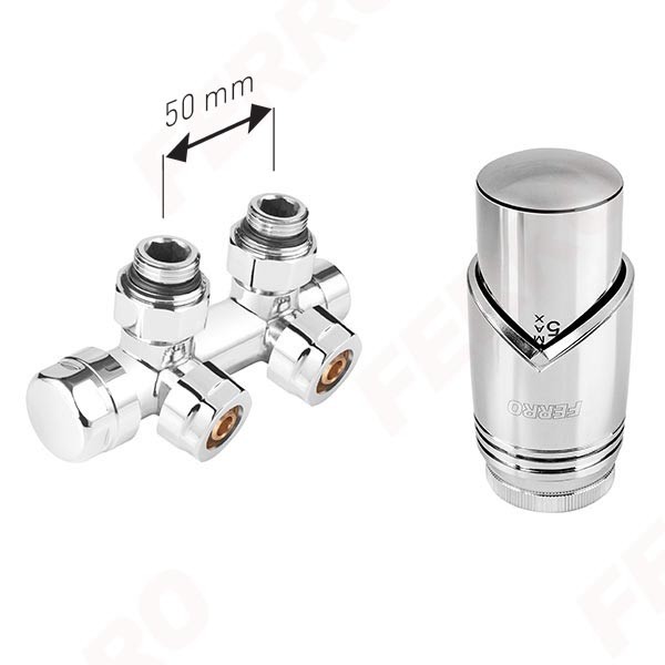 Комплект термостатический интегрированный угловой GT31 хром Ferro ZTD30CR для подключения систем отопления
