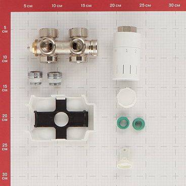 1 шт. присоединительный клапан со вставкой запорного и предварительно регулируемого клапана для полотенцесушителей и проектных радиаторов, резьбовое соединение М 30 х 1,5, с регулировочным ключом, сочетает в себе угловую и прямую конструкцию, преобразуемый для право- или левостороннего соединения, интегрированный клапан заполнения и слива для шланговых соединений, с самоуплотняющимися соединительными ниппелями и конусными вставками для полотенцесушителей и проектных радиаторов с соединением Rp1/2" или G3/4" M (евро конус), с евро конусом на стороне трубы для соединения с адаптерами сжатия, осевое расстояние 50 мм,