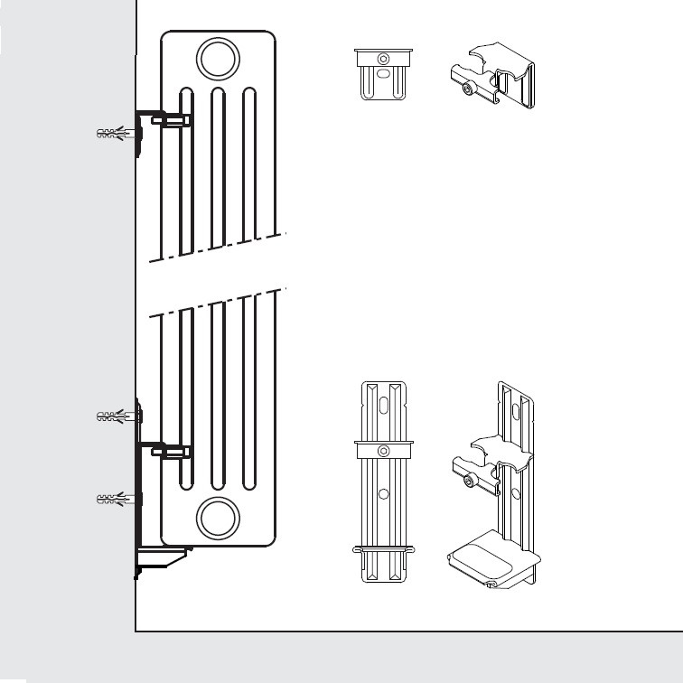 Монтажный комплект для радиатора Arbonia ZB02380001 для трубчатых радиаторов. Болты и дюбели входят в комплект поставки.