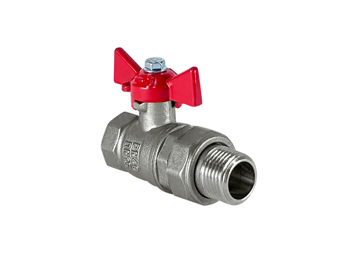 Кран шаровой (с никелевым покрытием), с американкой, ручка-бабочка (внутр-наруж) Valfex 3/4