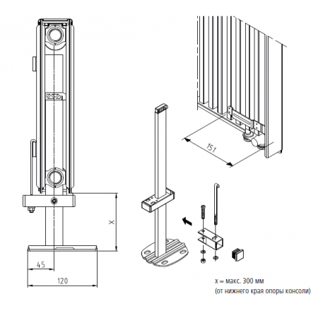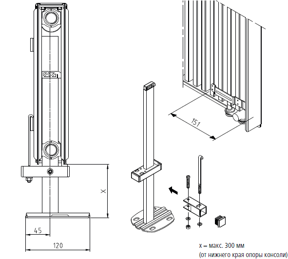 Напольный кронштейн для стальных радиаторов с напольной установкой