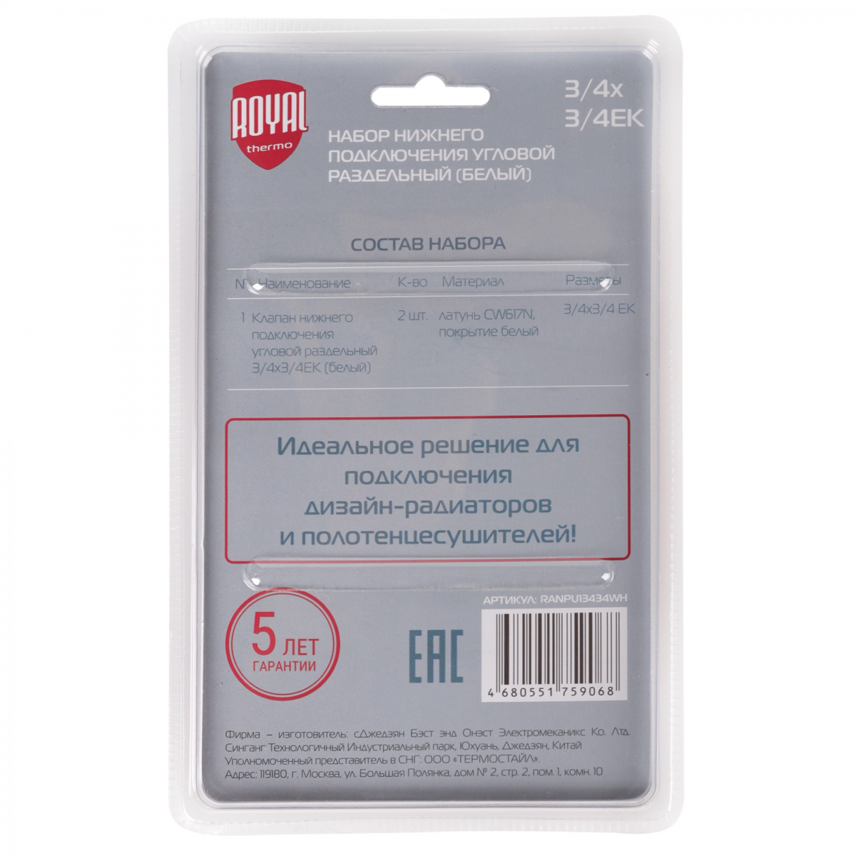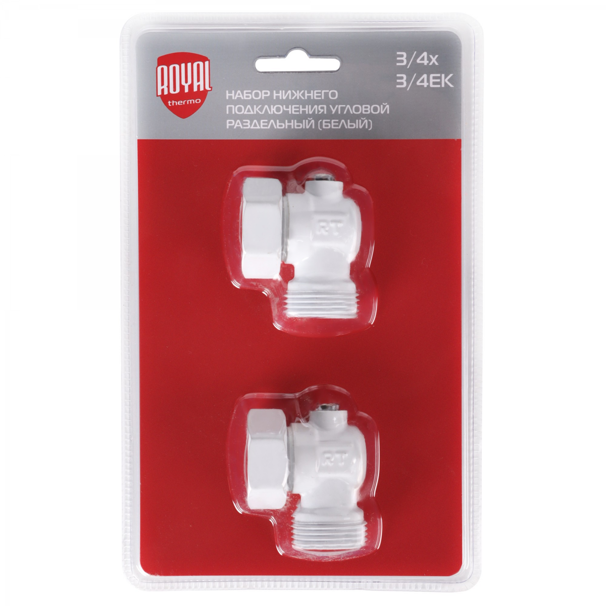 Набор нижнего подключения Royal Thermo 3/4"х3/4"ЕК, угловой, раздельный, для радиаторов.