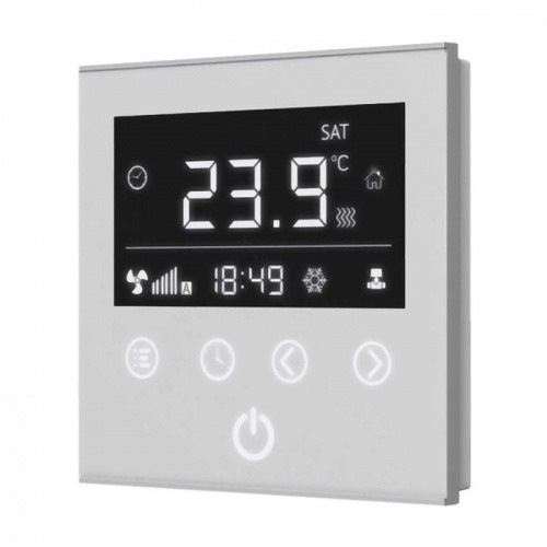 Программируемый настенный комнатный термостат с регулированием скорости вентилятора для конвекторов с принудительной конвекцией.