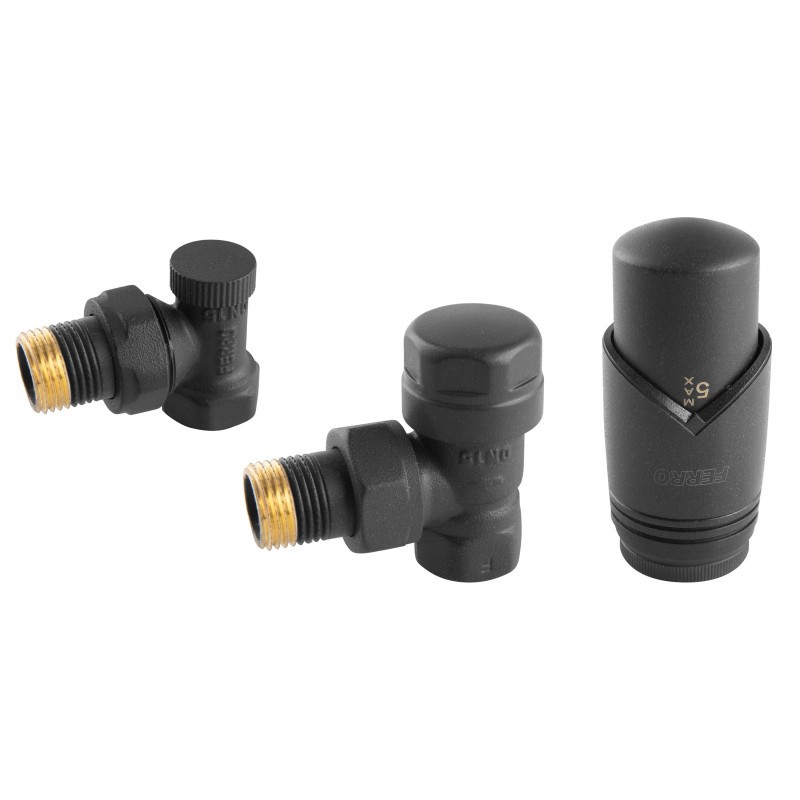 Термостатический комплект 1/2" прямой антрацит Ferro ZTM31AT нр1/2''-вр1/2'' для подключения систем отопления