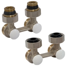 Узел нижнего подключения стальных панельных радиаторов, угловой, для двухтрубных систем. Компактное исполнение. Содержит отсечной клапан для перекрытия и балансировки.