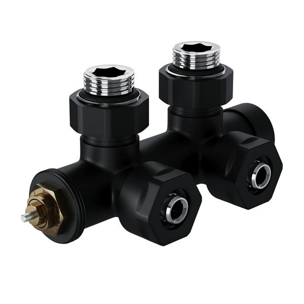 Узел нижнего подключения термостатический Design Pro предназначен для нижнего подключения радиаторов без встроенной термостатической вставки. Размер подключения к радиатору 1/2”. К системе отопления набор подключается через монтажную латунную трубку диаметром 15 мм.