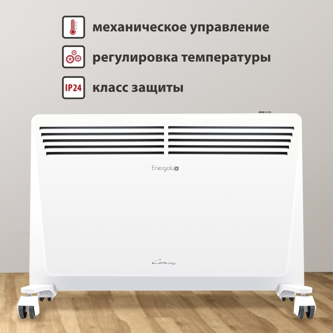 Электрический конвектор Energolux GCH/CM-20 монолитный, мощность 2000 Вт, термостат, напольный/настенный, управление механическое, площадь обогрева 25 м2.