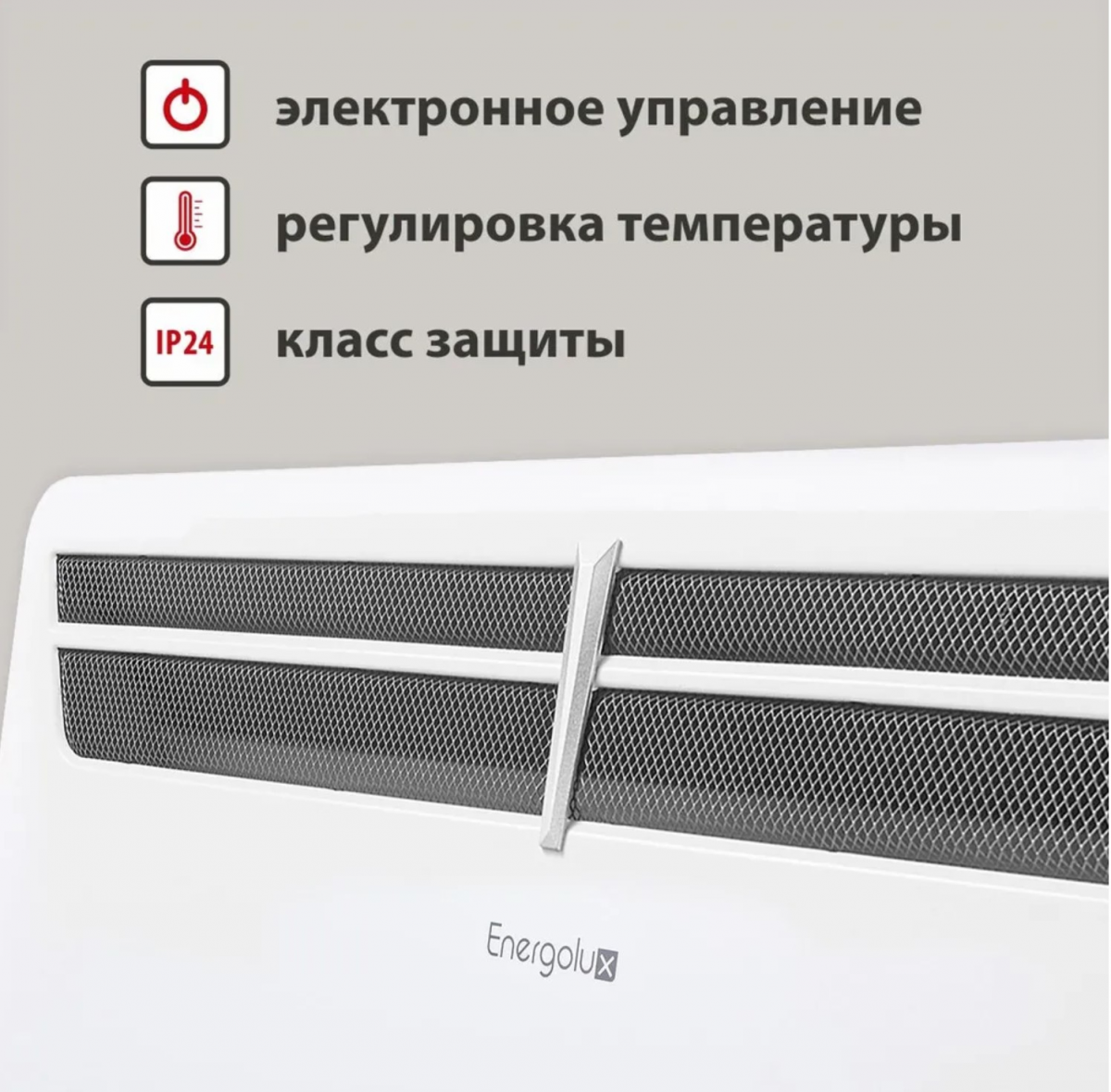 Электрический конвектор Energolux GCH/VI-20 монолитный, мощность 1800 Вт, термостат, напольный/настенный, управление электронное, площадь обогрева 25 м2.