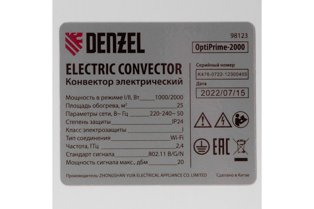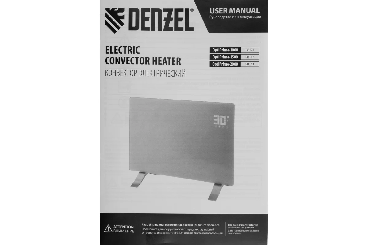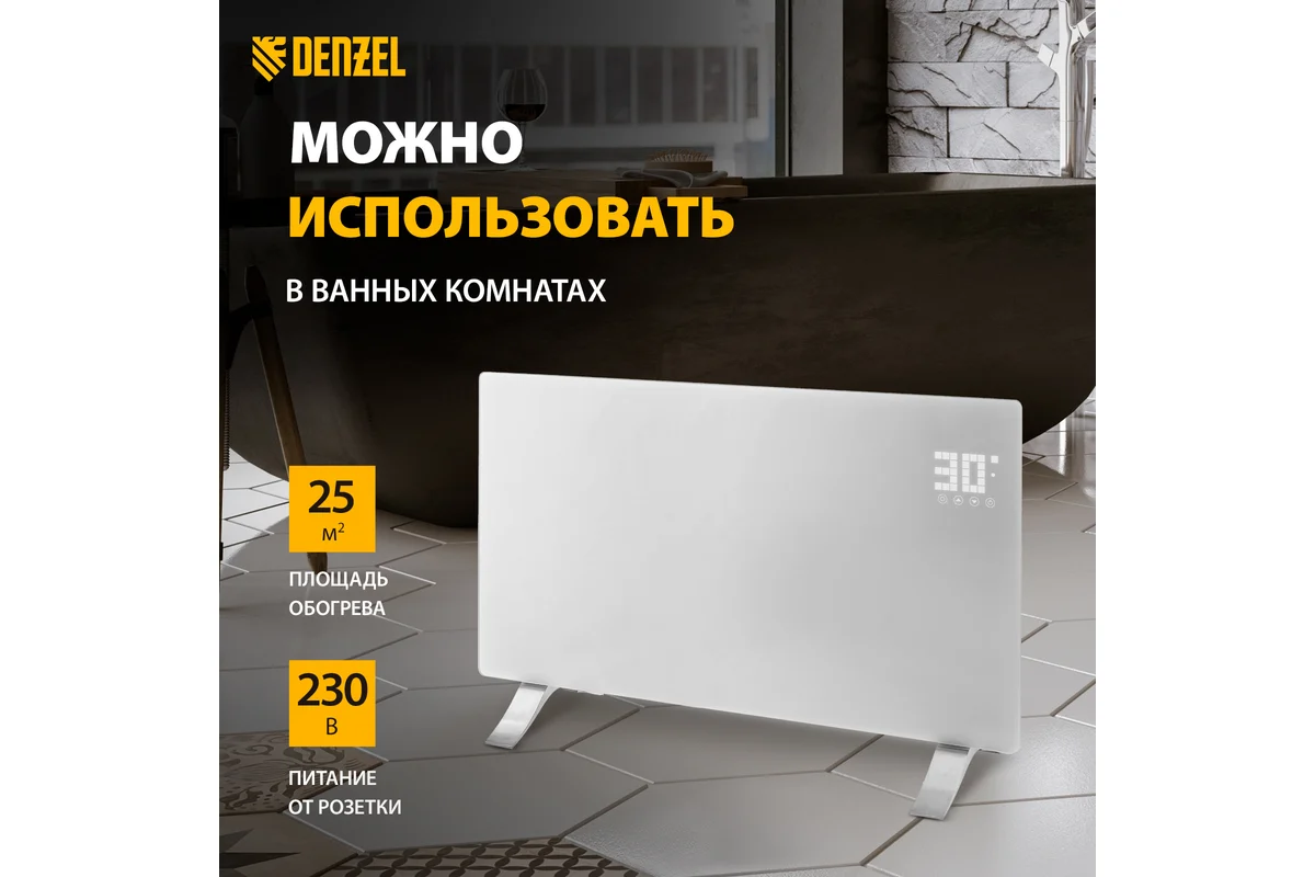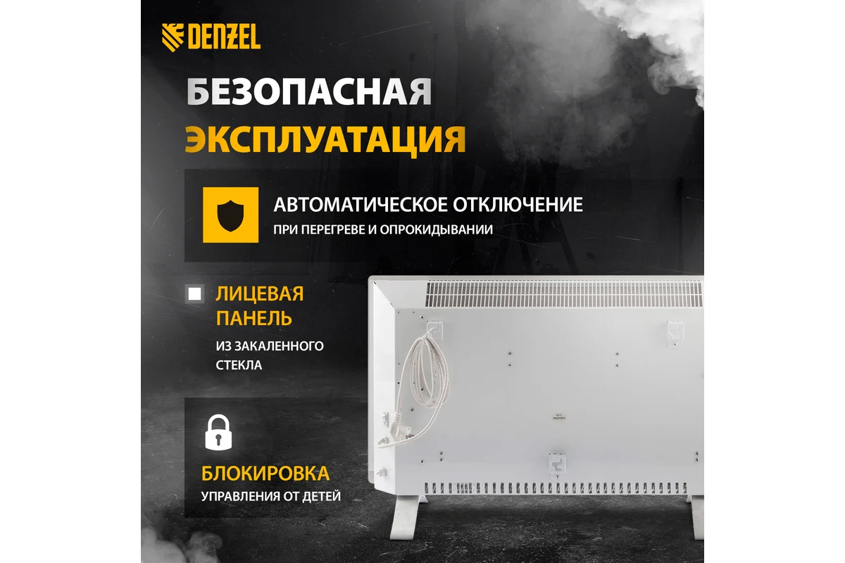 Конвектор Denzel OptiPrime-2000, монолитный нагревательный элемент, мощность 2000 Вт, термостат, напольный/настенный, площадь обогрева 25 м2, защита от перегрева