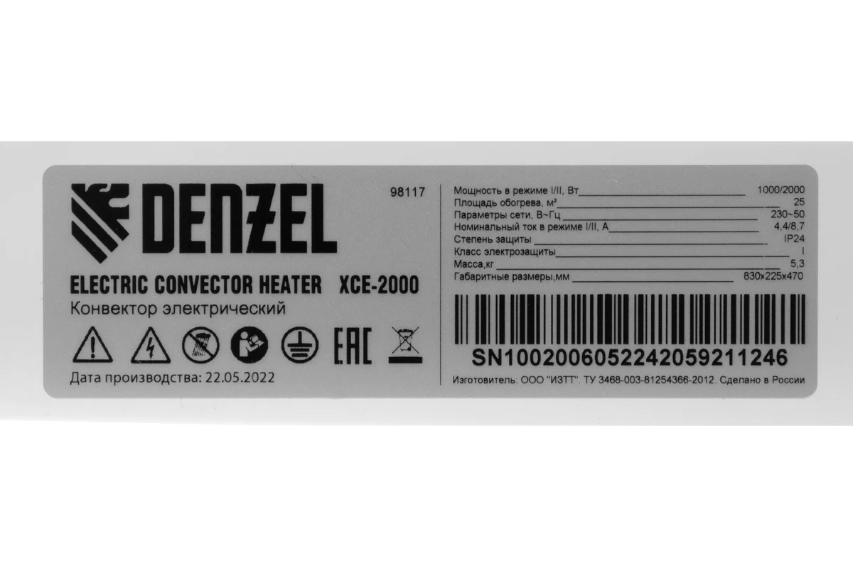 Электрический конвектор Denzel XCE-2000, 230 В, 2000 Вт с Х-образным нагревателем работает от сети 230 В, потребляет мощность 2000 Вт. Прибор используется в закрытых помещениях: квартирах, офисах, на производствах, в общественных местах и т.д. Благодаря особой форме X-образного нагревательного элемента обеспечивает быстрый и равномерный прогрев помещения до необходимой температуры. Максимальная площадь обогрева составляет 20 кв.м.