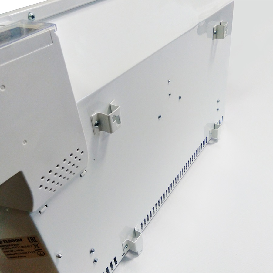 Установка конвектора может быть как настенной, так и напольной, для чего в комплекте предусмотрены ножки и крепления. Продуманный размерный лист облегчает быстрый монтаж на стену, а длинный шнур питания (1.6 м) обеспечивает удобство размещения.