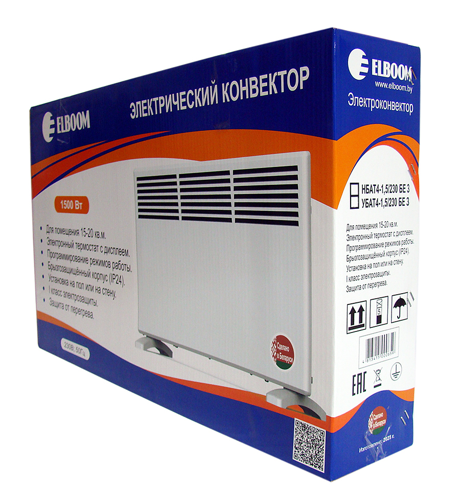 Конвектор электрический ELBOOM ELBOOM УБАТ4-1,5/230 Б Е З, настенный/напольный, мощность: 1500 Вт, площадь обогрева: 20 м², управление: электронное, защита от перегрева/ мороза, влагостойкий корпус
