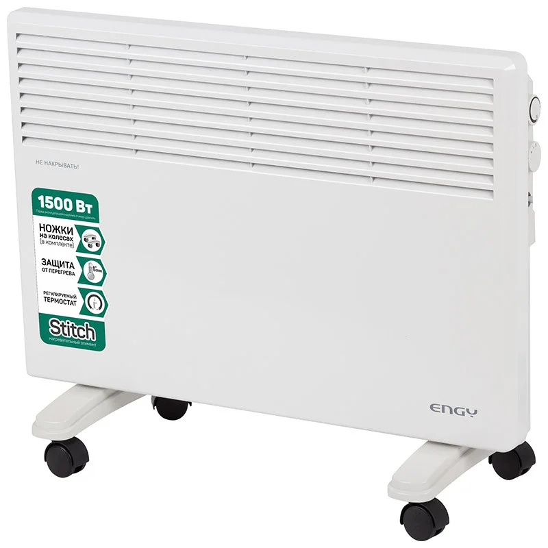 Модель оснащена регулируемым термостатом и возможностью настройки мощности (750/1500 Вт), что позволяет оптимально подобрать режим работы под текущие потребности. Защита от перегрева и световой индикатор работы обеспечивают безопасность и удобство эксплуатации. В комплекте предусмотрены ножки на колесиках, упрощающие перемещение устройства по комнате.