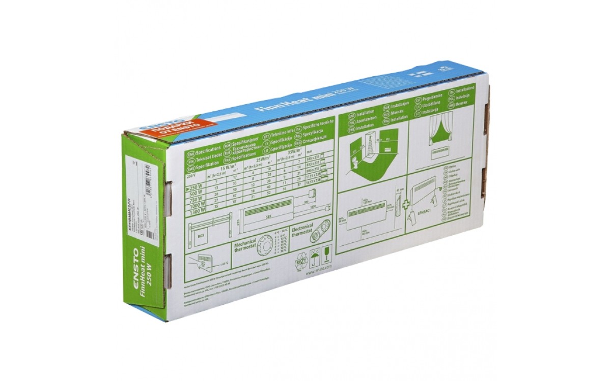 Конвекторы Ensto FinnHeat с механическим термостатом серии Mini EPHBMM – это финский конвектор для полноценного основного отопления. Его особенностью является уменьшенный размер по высоте для удобства размещения под широкими и панорамными окнами.