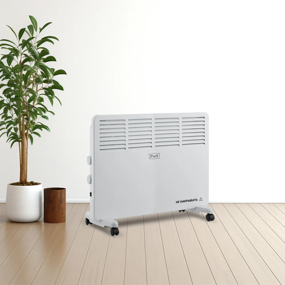 Конвектор электрический Puff - ОК 1500, монолитный нагревательный элемент, мощность 1500 Вт, термостат, напольный/настенный, площадь обогрева 20 м2, защита от перегрева
