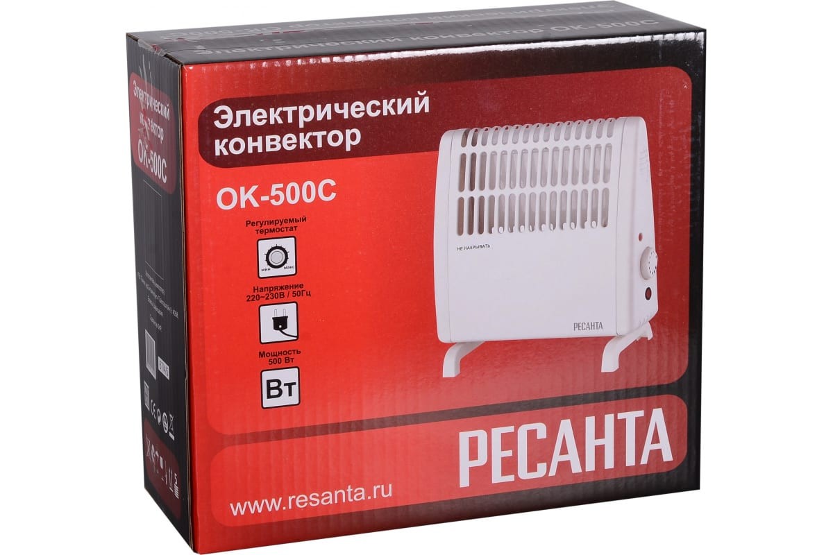 Конвектор электрический Ресанта ОК-500С 67/4/5, мощность 500 Вт, напольный монтаж, управление механическое, площадь обогрева 5 м2.