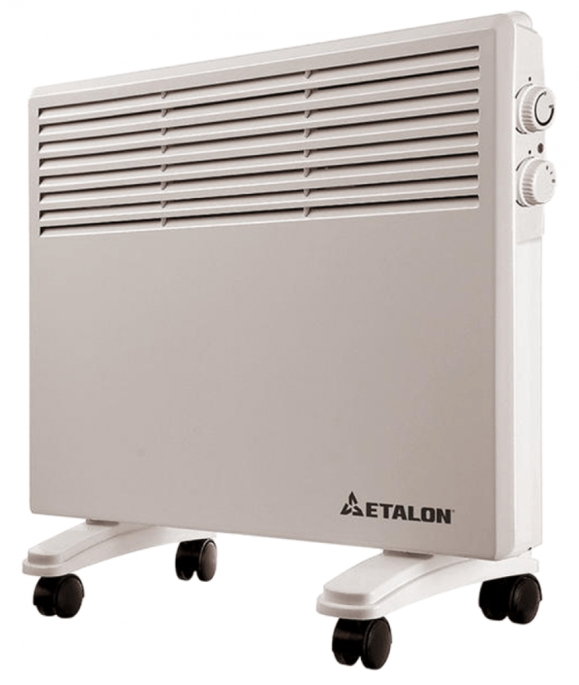 Электрический конвектор ETALON E2000UE оснащен надежным алюминиевым ТЭНом, который не потрескивает при нагревании, работает бесшумно. Также в модели предусмотрен механический термостат. Модели имеют регулируемую мощность – полную и половинчатую. Возможность выбора температуры обеспечивает встроенный термостат. Прибор поставляется с настенными креплениями и ножками на колесиках для напольной установки.