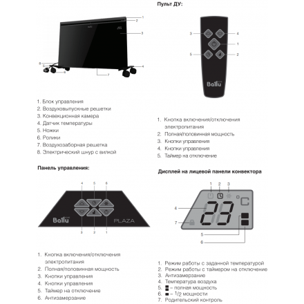 Электрический конвектор Ballu BEP/EXT-2000 для обогрева помещений до 25 м2 с электронным управлением, напольно-настенная установка